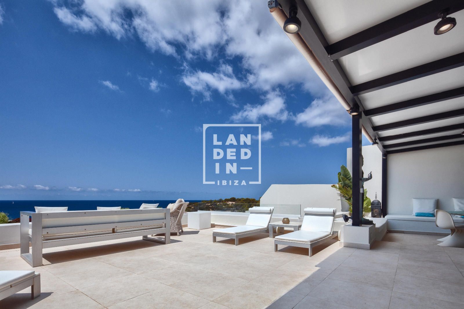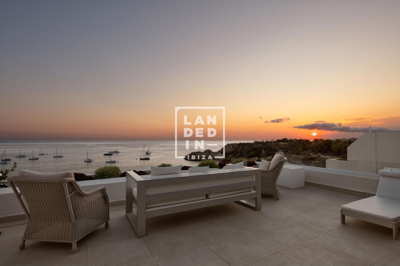 Ático moderno en Cala Tarida con vistas al mar y puestas de sol