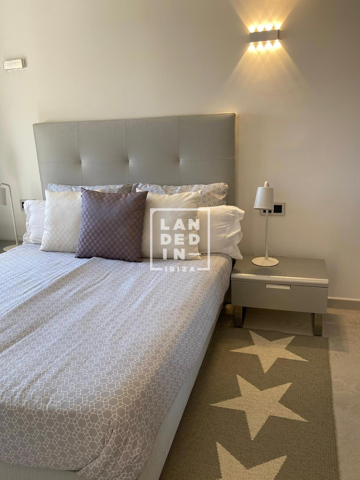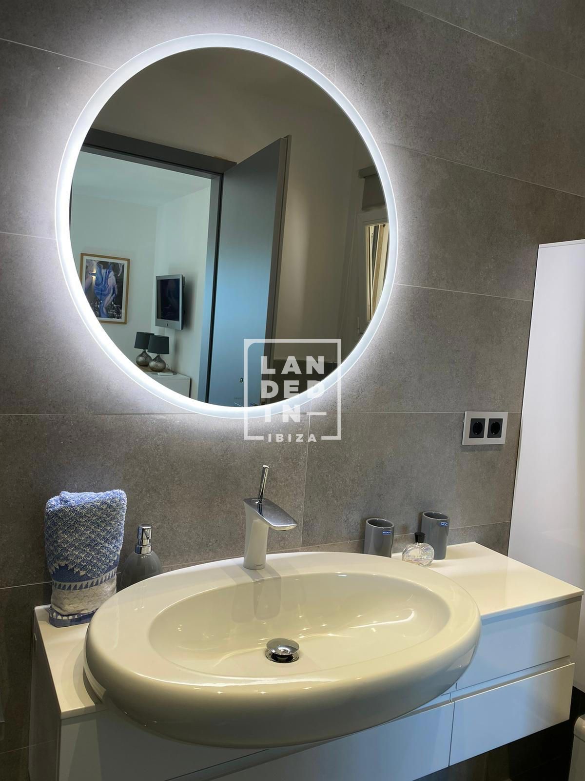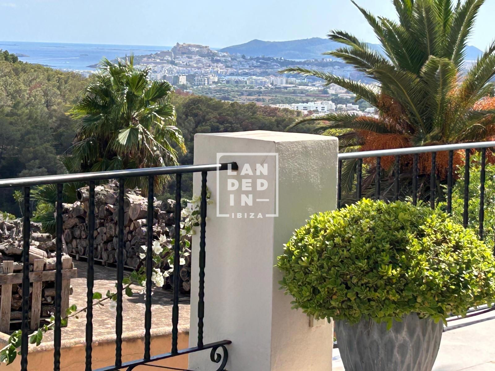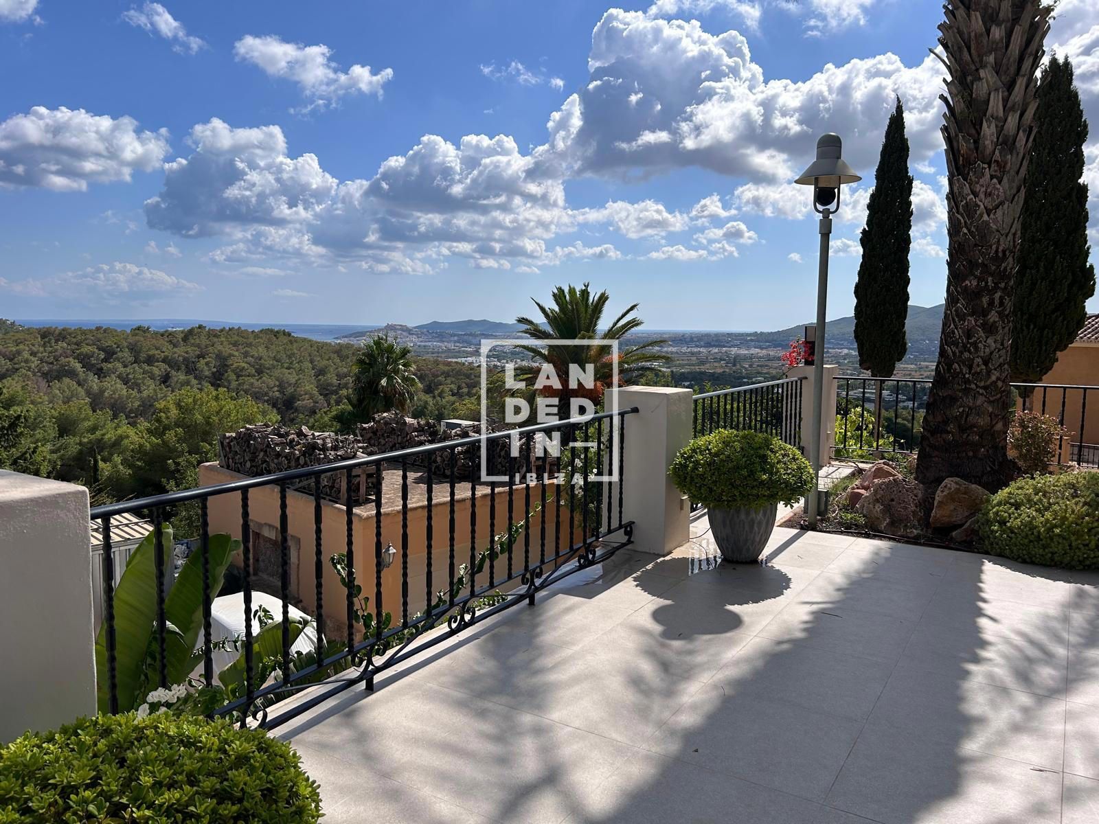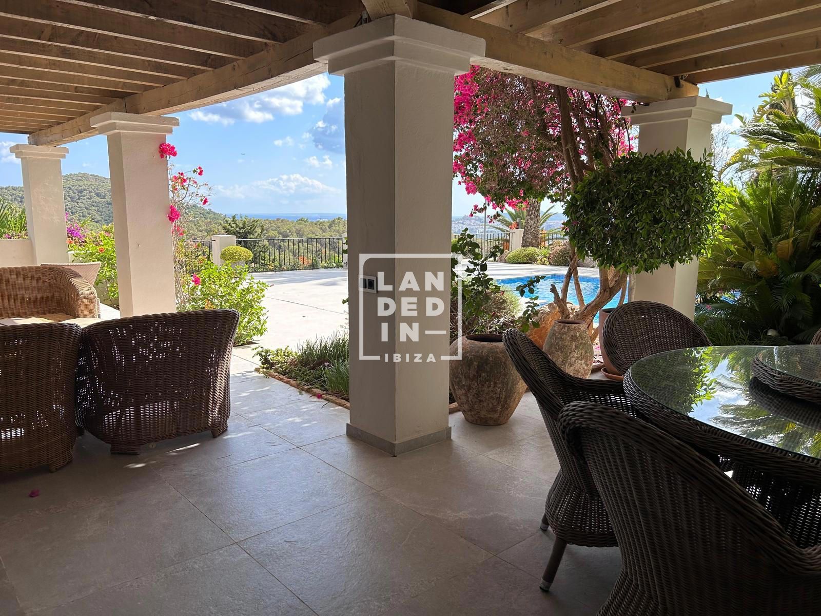 El exterior es un auténtico paraíso, con una piscina privada rodeada de impresionantes vistas, perfecta para relajarse y disfrutar del clima mediterráneo. Desde la villa, se puede admirar una panorámica inigualable del mar, Formentera y la vibrante ciudad de Ibiza.